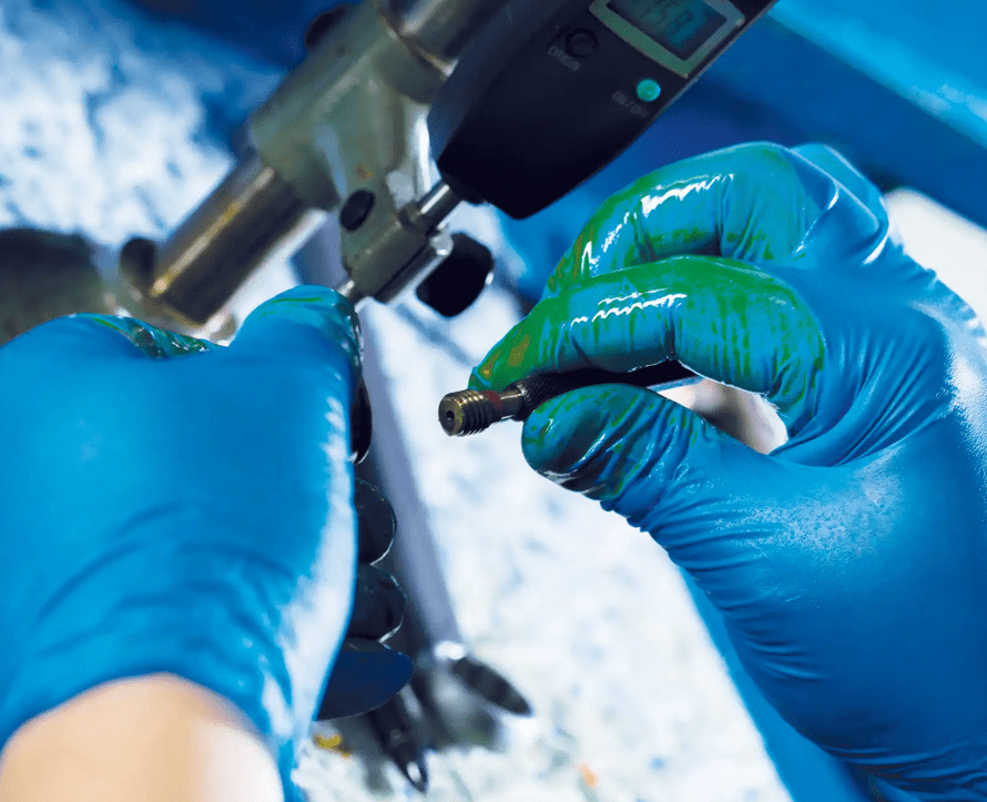 Nitrilgummi, puderfria. Färg: Blå. Starka och elastiska. Mikroruggad ytstruktur för bättre grepp. Beständighet mot fett, rengöringsmedel, kemikalier (EN374). Godkända för användning i direkt kontakt med alla typer av livsmedel, inklusive livsmedel med hög fetthalt (EN 1186). Skydd mot bekämpningsmedel enligt ISO 18889:2019, nivå G1 (för kontakt med utspädda bekämpningsmedel). Vikt 5,8 ± 0,2 g.