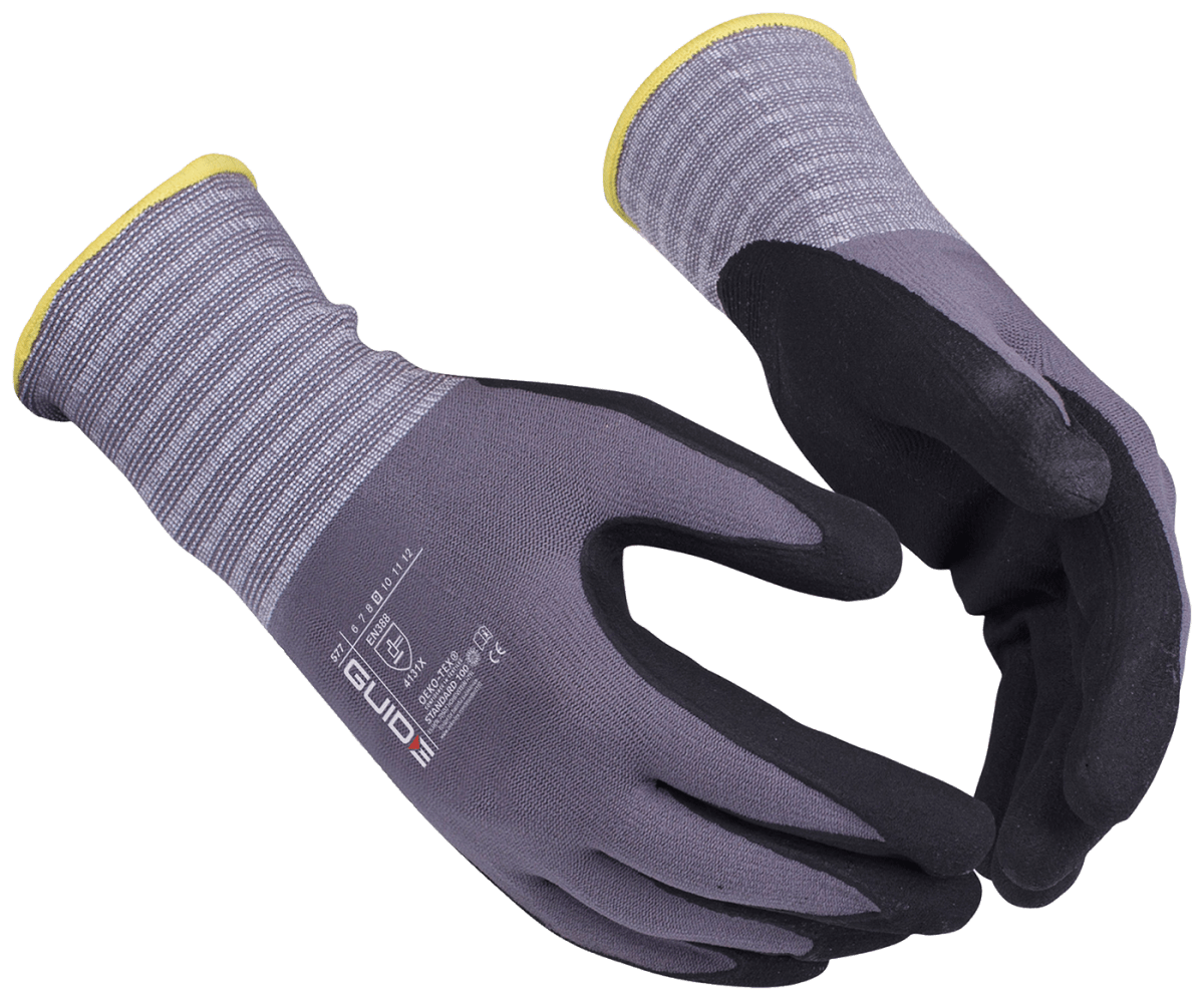 Guide 577 är en tunn montagehandske med en sömlös stickning som ger en mycket bra passform och hög fingertoppskänsla. Innerhanden är belagd med mikroporös nitril som ventilerar mycket bra. Mudden är ribbstickad och gör att handsken sluter åt om handleden. En handske med hög slitstyrka och mycket god komfort. Ökotex-godkänd. Lämplig för montage- och byggindustri