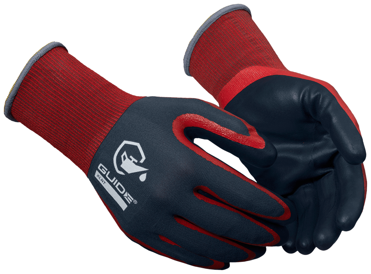 Guide 9502 är en dubbeldoppad montagehandske där Guide XLNT nitrilbeläggning kombinerar barriärskydd med mycket bra grepp. Denna modell har en luftig ovanhand med en vätsketät innerhand, samt är mycket tunn och smidig. Livsmedelsgodkänd, godkänd för kontaktvärme nivå 1.