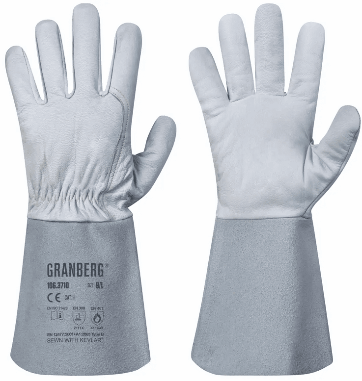 Granberg 106.3710 Mjuka och bekväma handskar av getnarv. Mjuk manschett i oxspalt. Sömmar av stark, värmetålig Kevlar®-tråd. Ofodrad för bättre fingerkänsla.