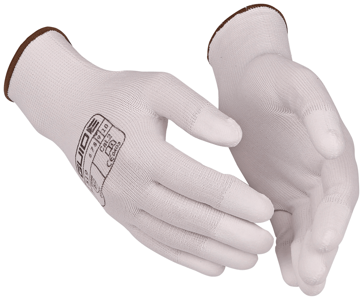 Guide 519 är en tunn sömlös handske i nylon med fingertopparna doppade i PU.
