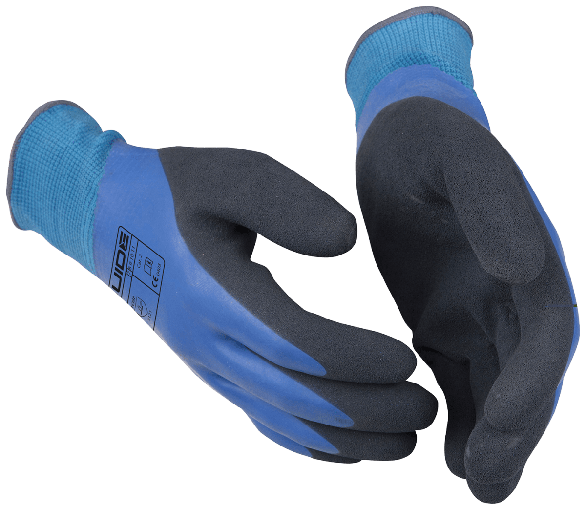 Guide 585 är en heldoppad, vattentät montagehandske med dubbeldoppad handflata. Doppningen är i latex, vilket innebär att handsken behåller sin flexibilitet även vid lägre temperaturer. Godkänd för kontaktvärme 2. Öko-Tex godkänd.