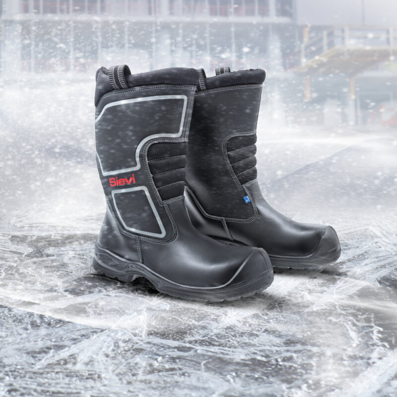 Sievi 52782 Storm XL+S3L med värmeisoleringen PrimaLoft® i kombination med ullteddyfoder och lös aluminiumfiltsula garanterar en utmärkt värmeisolering. Spiktrampskyddet av textil och tåskyddet av komposit är fria från metall, håller dina fötter i säkerhet och gör stövlarna lätta vid användning. Den elastiska PU-sulan med utmärkta greppegenskaper sörjer för din arbetskomfort även under vinterförhållanden.