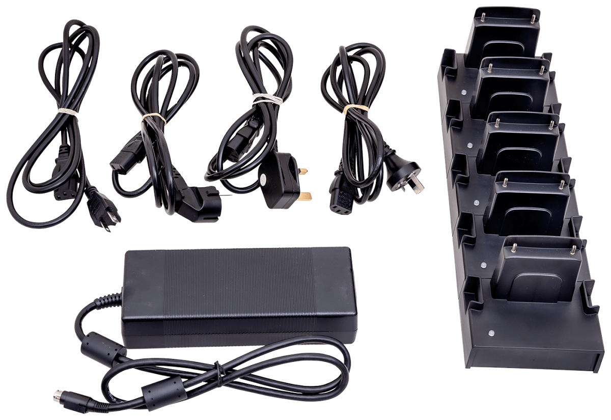 Multiladdaren är utformad för enkel laddning av upp till fem CleanAIR-batterier samtidigt. Den inbyggda dioden visar laddarens status och indikerar när laddningen är klar.