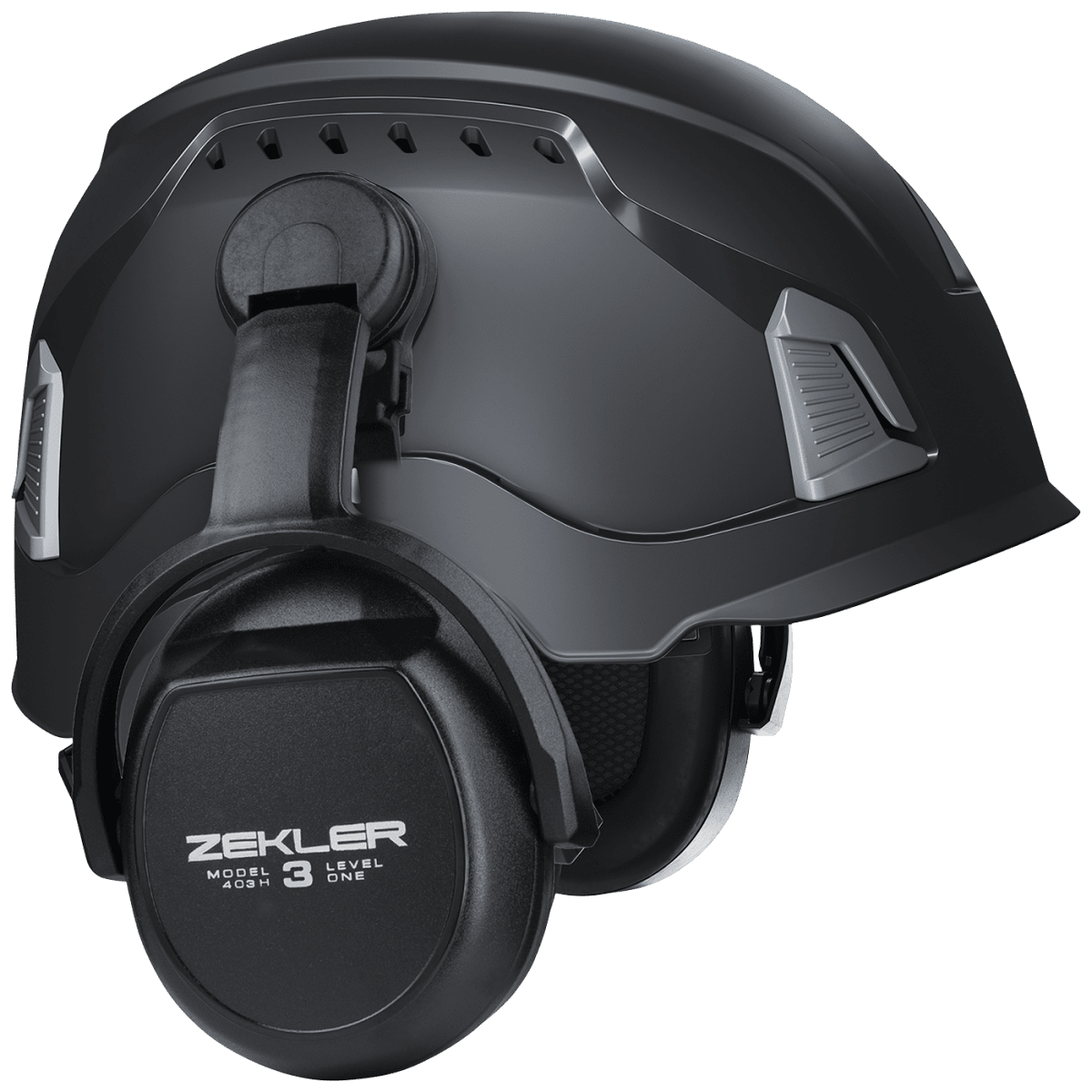 Komfortabla hörselkåpor med hjälmmontage och extra hög dämpning vid mellan och låg frekvens. Hjälmmontaget med gaffelmontering och de breda tätningsringarna ger ett jämnt bygeltryck och en komfortabel användning. Hjälmadaptern är förberedd för montering av Zekler visirsystem.