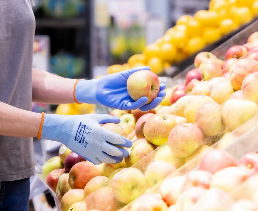 Godkända för användning i direkt kontakt med alla typer av livsmedel, inklusive livsmedel med hög fetthalt (EN 1186). Skyddar mot kontaktvärme (nivå 1) upp till 100°C i 15 sekunder. Slitstark beläggning ger ett säkert grepp i våta, torra och oljiga förhållanden. Mjuka och välsittande med fingerkänsla. Maskintvätt i 60 °C (upp till 10 gånger). Oeko-Tex® 100-godkända.