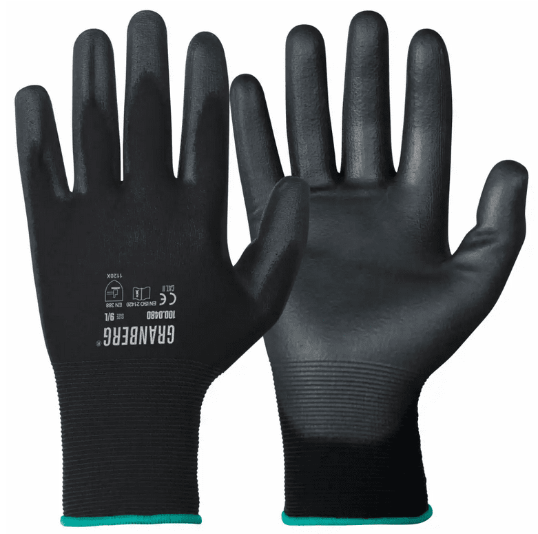 Granberg 100.0480 är tunna Slitstarka montagehandskar med god fingerkänsla som kan användas med pekskärm. Utmärkt torrgrepp. Utmärkt fingerkänsla och med ventilerande egenskaper. Extra tunn nylonväv (18 gauge) förbättrar fingerkänslan och mjukheten ytterligare.