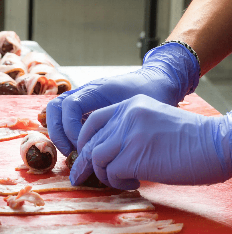 Soft Nitrile™, puder- och acceleratorfria. Färg: Indigo. Mjukt och starkt nitrilgummi. Mikroruggad ytstruktur på fingertopparna för bättre grepp. Godkända för medicinsk användning (EN 455). Testad enligt ASTM D6978-05 - Resistance of Medical Gloves to Permeation by Chemotherapy Drugs. Godkända för användning i direkt kontakt med alla typer av livsmedel, inklusive livsmedel med hög fetthalt (EN 1186). Vikt 3.5 ± 0,5 g.