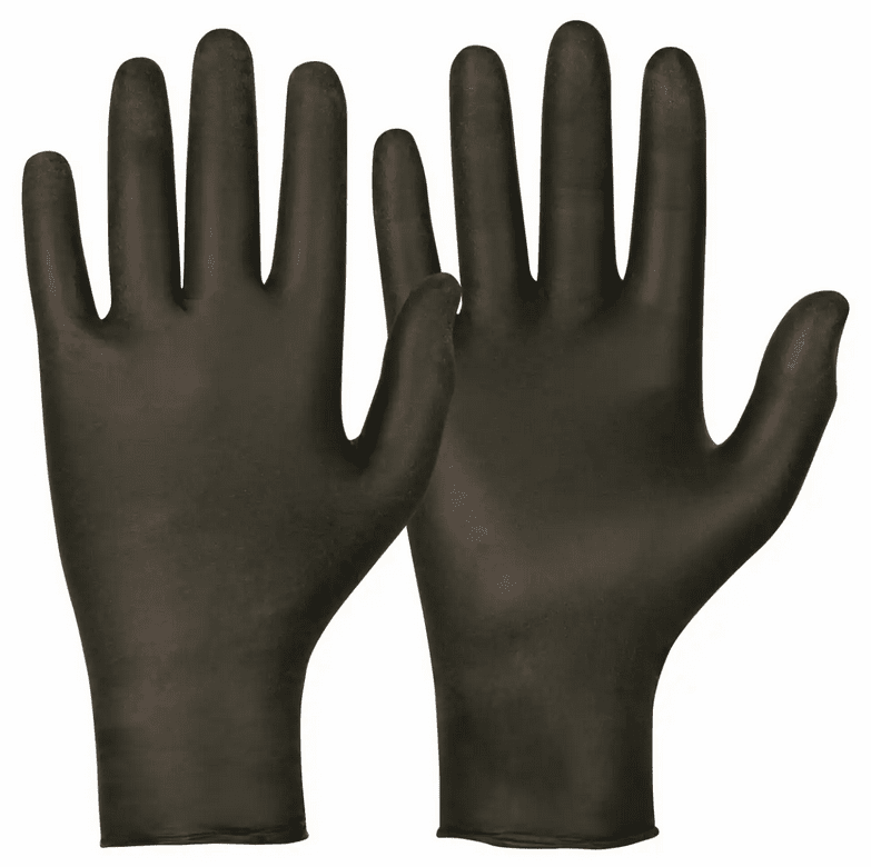 Nitrilgummi, puderfria. Färg: Svart. Starka och elastiska. Mikroruggad ytstruktur för bättre grepp. Beständighet mot fett, rengöringsmedel, kemikalier (EN374). Godkända för användning i direkt kontakt med alla typer av livsmedel, inklusive livsmedel med hög fetthalt (EN 1186). Skydd mot bekämpningsmedel enligt ISO 18889:2019, nivå G1 (för kontakt med utspädda bekämpningsmedel). Vikt 5,8 ± 0,2 g.