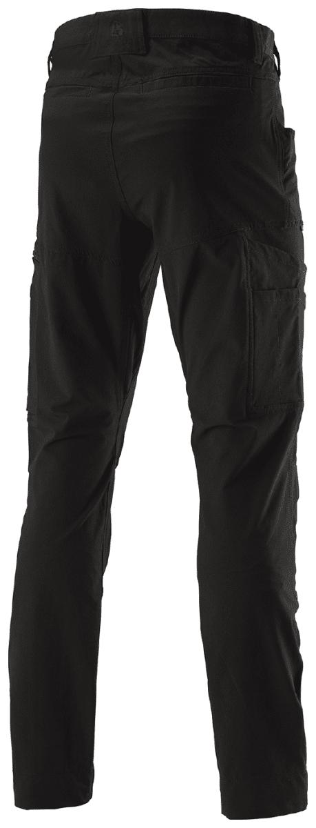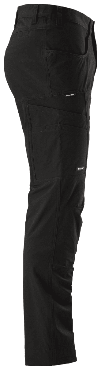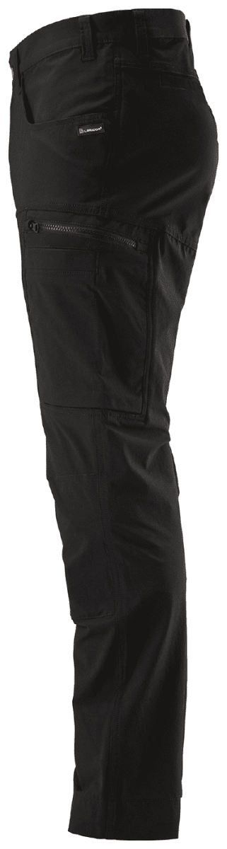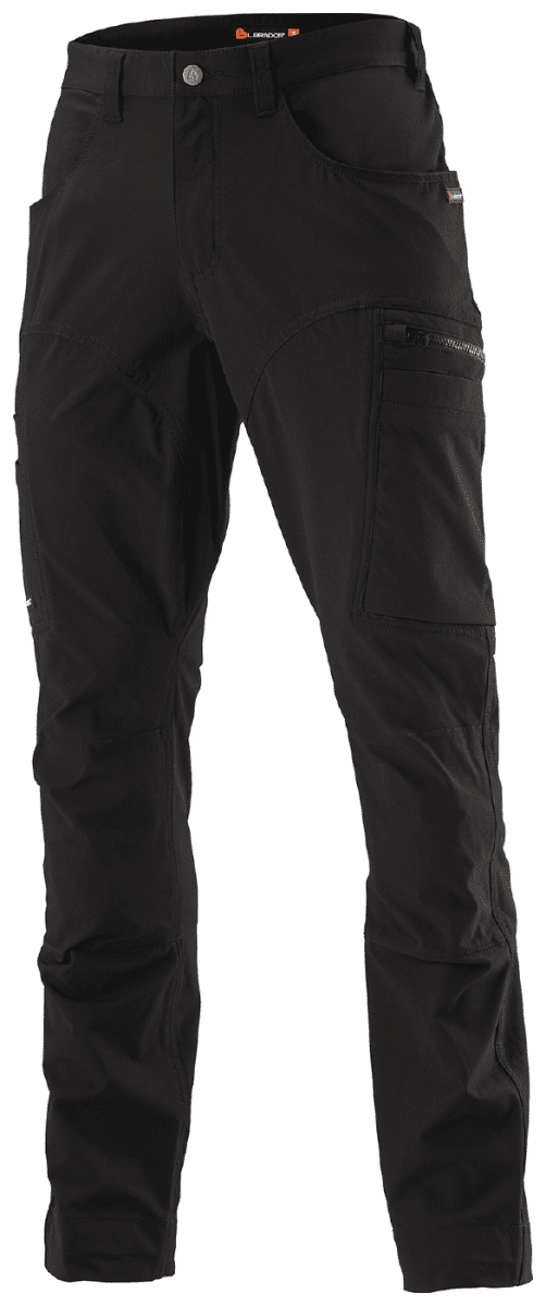 En servicebyxa från L.Brador i fullstretch. 4-vägsstrechmaterial med ripstopfunktion och låg vikt. Lätt och luftigt 4-vägsstretch för maximal rörlighet och komfort. Ripstopfunktion. Kroppsnära passform. Förböjda knän för bättre passform och flexibilitet. Frontfickor. Infällda stolpfickor bak. Vänster benficka med utvändig telefonficka. Höger benficka med enklare tumstocksficka och extra fickor.