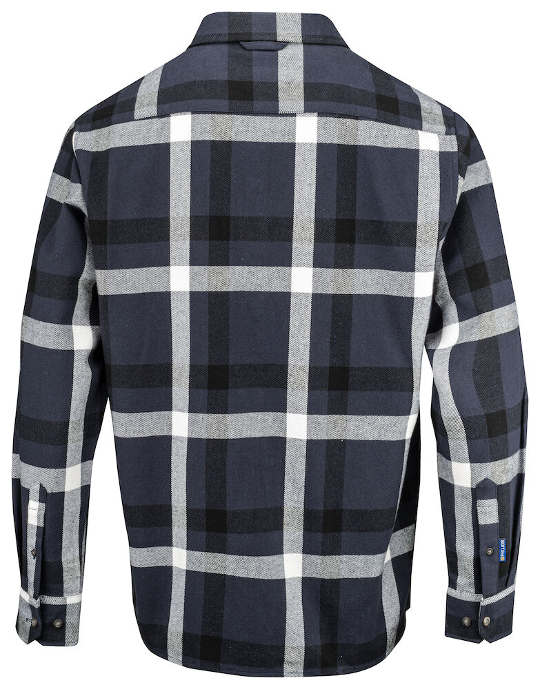Projob 5212 flanellskjorta med två stora bröstfickor med lock, försluts med knappar. Reglerbara manchetter i ärmsluten med två knappar för justerbar vidd. Skjortan är tillverkad i en mjuk bomullsflanell med ruggad utsida.